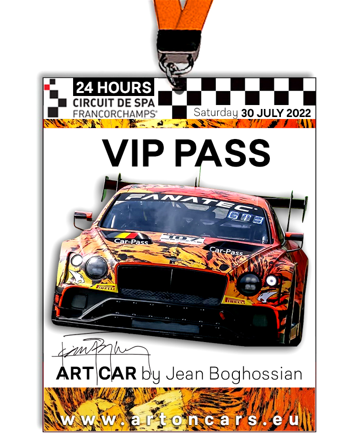 En achetant le Pass VIP ART CAR - Bentley Continental GT3 by Jean Boghossian, vous contribuez à soutenir les associations caritatives Belge YourGT et l'ASCTR, dont la mission est d'accroître la pratique du sport dans les centres de réhabilitation de personnes avec un handicap.